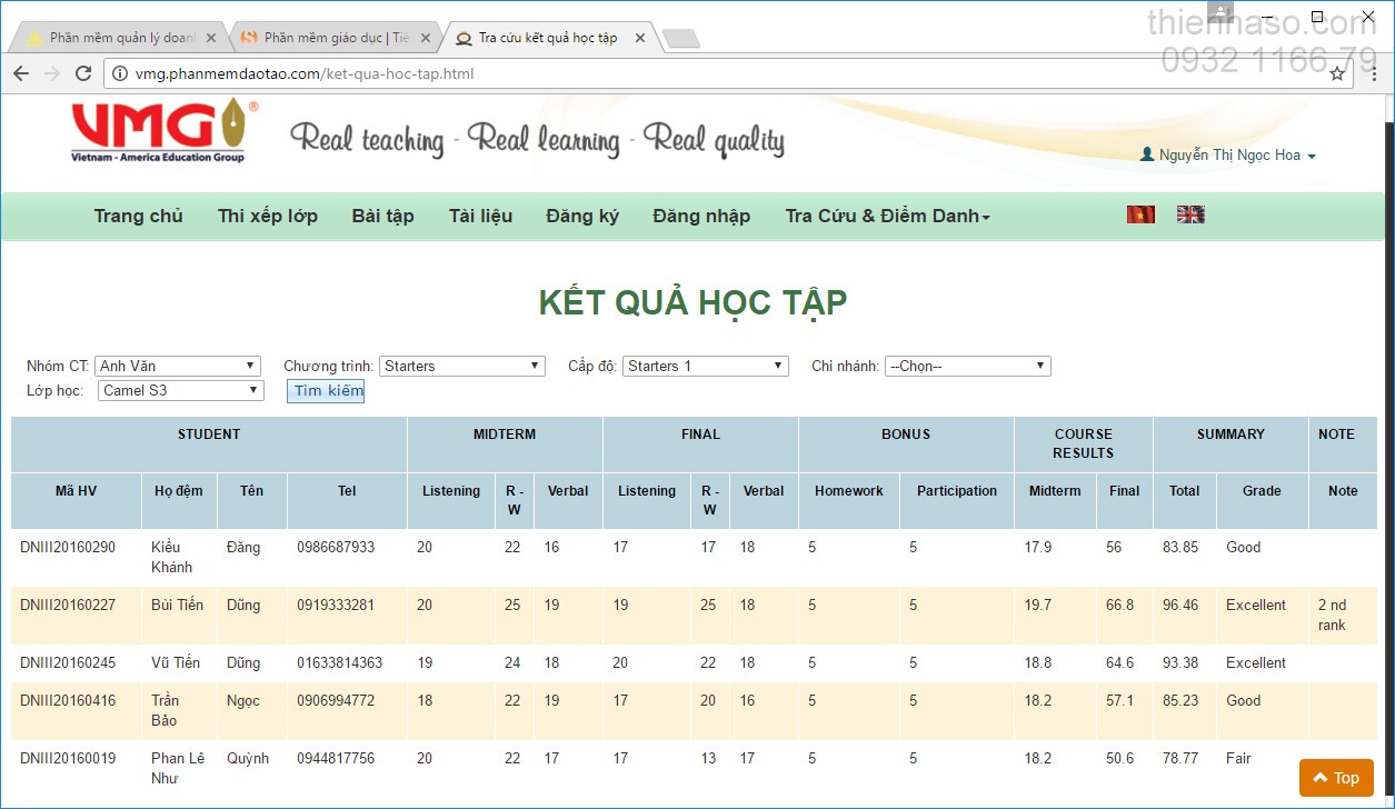 Các bạn có thể tham khảo hệ thống tra cứu tại: http://vmg.phanmemdaotao.com